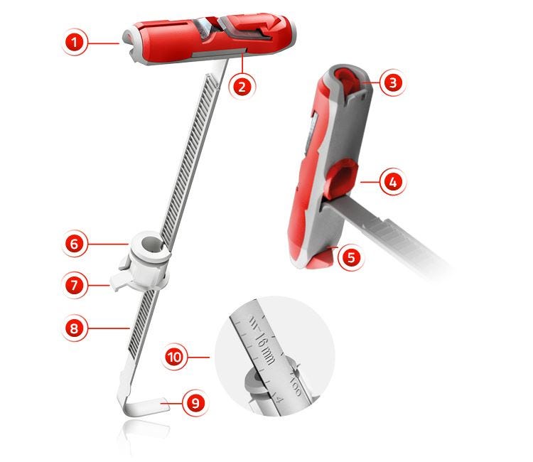 - Handle for sensing obstacles (e. g. cables, pipes etc.) in the cavity.