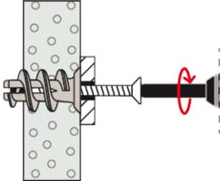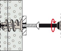 - The GK is screwed flush into the gypsum plasterboard using the setting tool provided. Overtightening the fixing should be avoided. Therefore, the installation torque should be limited when using a battery operated screwdriver.