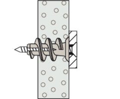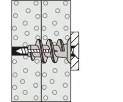 The Fischer plasterboard fixing GK is made from high-quality nylon. The fixing is screwed in the pre-positioned installation with the enclosed setting tool flush to the surface and single and double-planked gypsum plasterboard. The spiral plug holds by creating a form fit. The compact design also allows installation in walls, where the panel thickness or the cavity behind the panel is unknown. The Fischer GK can hold wood, sheet metal, and chipboard screws from 4 to 5 mm thickness as well as different hooks and eye screws. Consequently, it is universally suitable for fixing e.g. pictures, lights, and electrical installations securely and quickly.